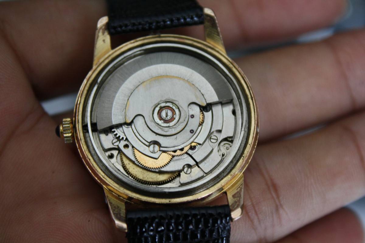 Dial biru gelap masih cukup bersih, case nya gold plate ..pada permukaan case ada beberapa timbul bintik-bintik (korosi) tp masih terlihat cukup bagus